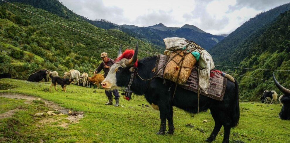 Cross alpine meadows with stunning views of Gangkar Puensum, Bhutan’s highest and unclimbed mountain.